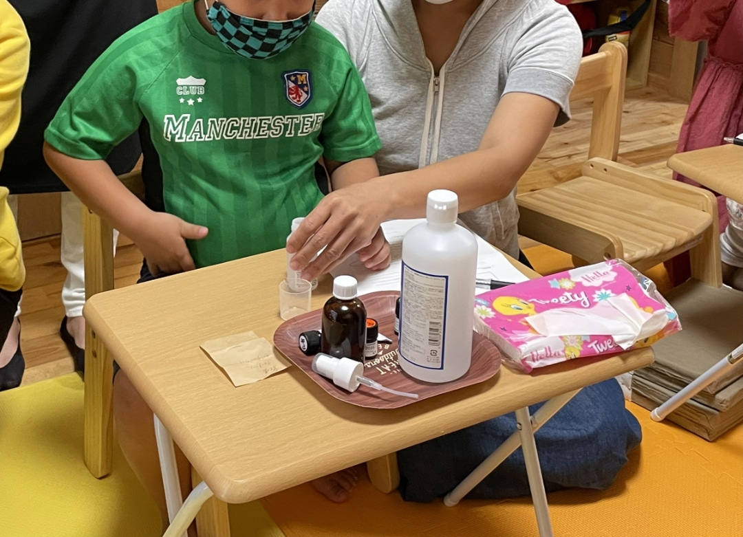 アロマには様々な効果が期待されるとのことで、保護者の方々、そしてあんだんてスタッフも興味津々。
