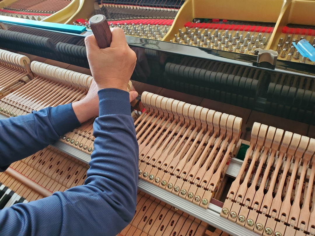 ピアノは、打鍵によってフェルト部分が固くなると、キンとした音になってしまうそうです。
