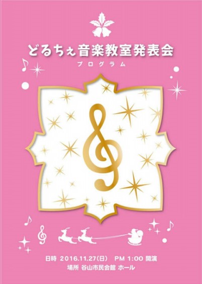 どるちぇMUSIC代表の中村千里です。今年も発表会が無事、終わりました。例年より少し早めでしたが、「どるちぇ音楽教室発表会」は、クリスマス気分満載の発表会です今年...音楽教室 -