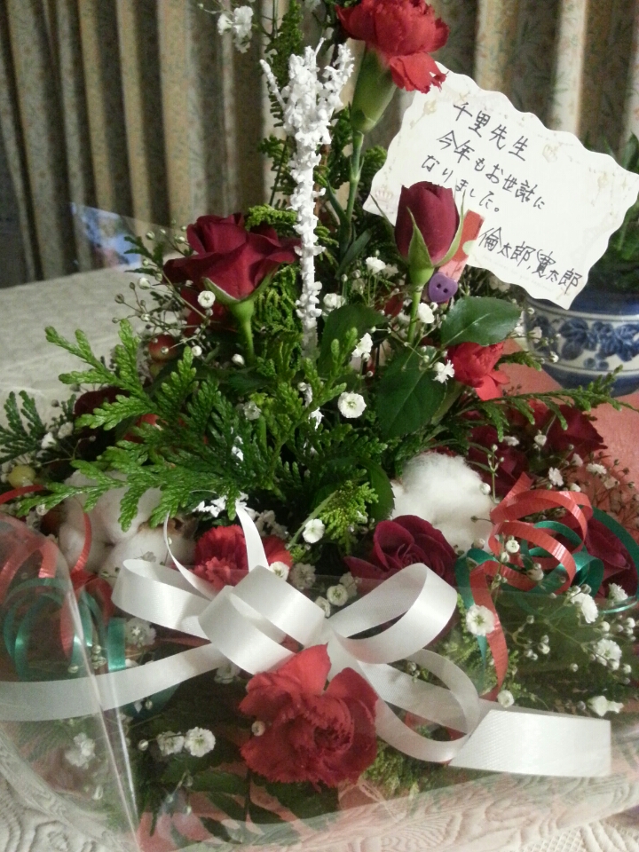 お教室にて♪「先生、今年もお世話になりました。ありがとうございました!」と、差し出されたのは素敵なお花のアレンジメント。一足早いクリスマスプレゼントをくれたの...音楽教室 -