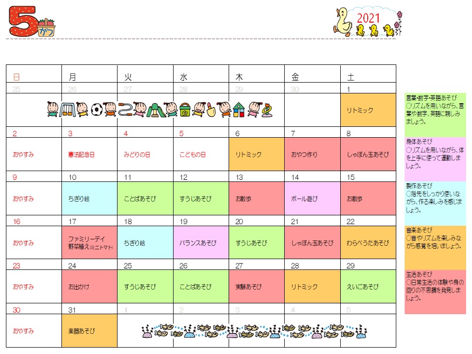 あんだんて5月プログラム予定