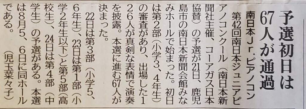 南日本ジュニアピアノコンクール予選突破