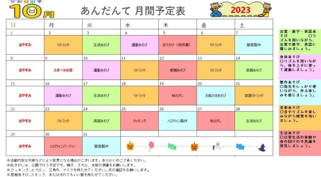 10月に入り、過ごしやすくなりましたね。先日の中秋の名月も見事で、秋の到来を感じました。さあ、今月のリトミック活動は、何をテーマに楽しみましょうか今月は、イオ... -
