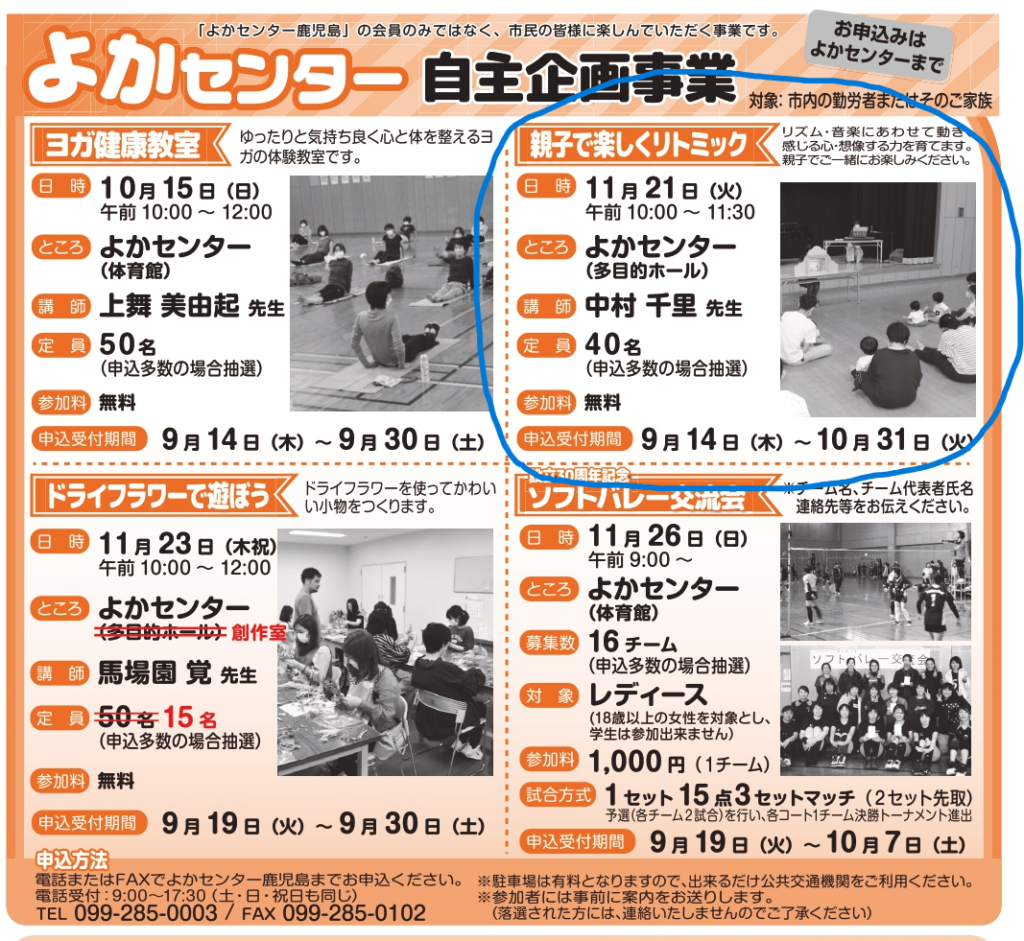 よかセンターでのリトミックお申込み開始